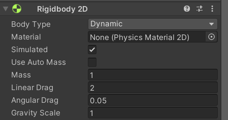 이때 공기저항( Linear Drag)을 설정하면 이동 시 속도를 느리게해준다.