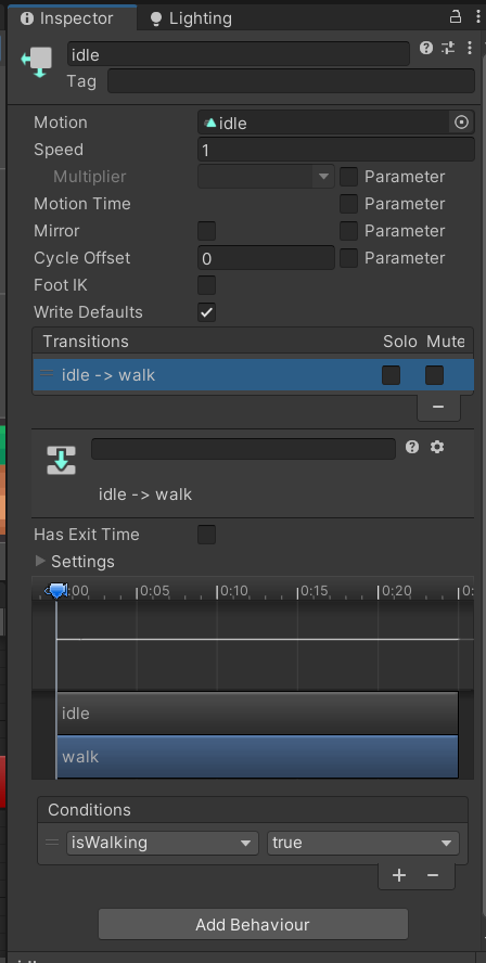 conditions는 아래의 상태(ex. isWalking)이면 다음 상태로 넘어갈수있다.