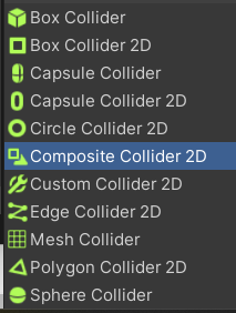 collider을 사용해야한다. 2D이면 2D가 붙은것을 사용해야한다.