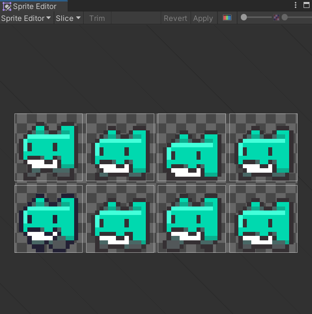 위의 사진은 grid by cell size는 입력한 사이즈대로 균일하게 잘라준다. 나는 16 16으로 잘라주었다.