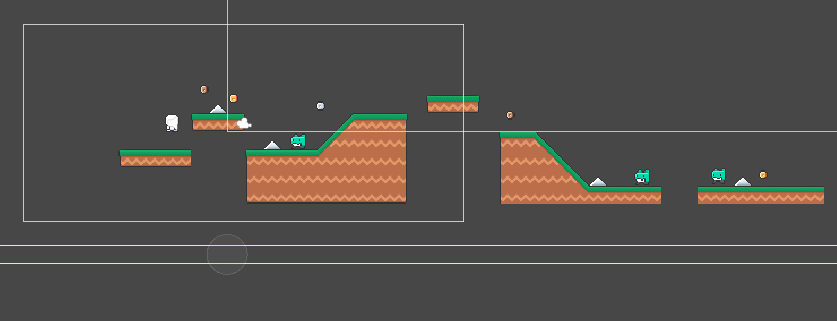 맨아래 초록색부분이 gameManager에 box collider2D를 적용한것이다.