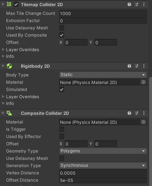 Tilemap collider는 used by composite를 체크해준다. 이는 composite한테 위임하는것이다.