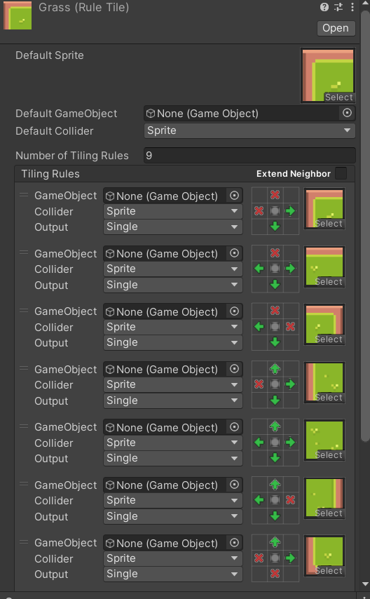 타일맵을 일일히 바꾸면서 그리지 않아도 하나의 타일맵을 누르면 정해진 rule에 따라 모양이 변한다.