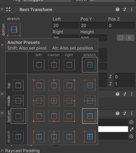 anchor이 적용된 UI이기 때문에 anchored position을 선택한다.