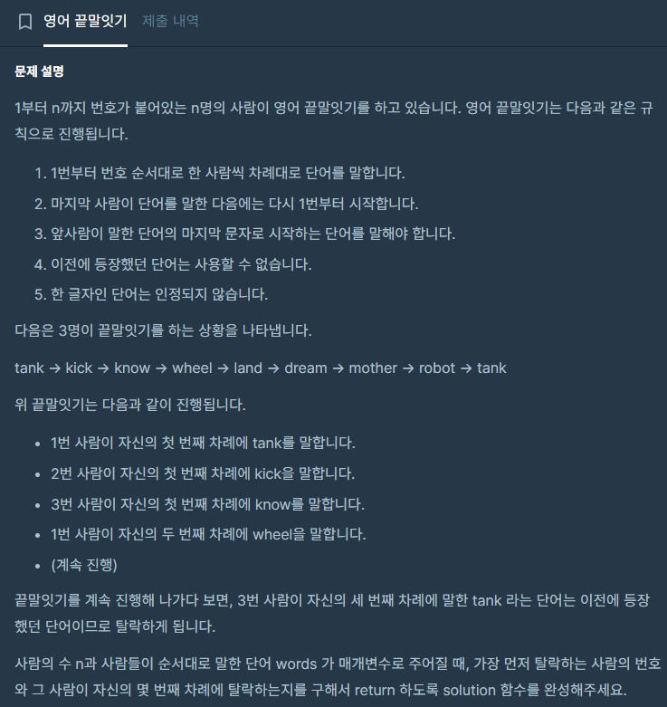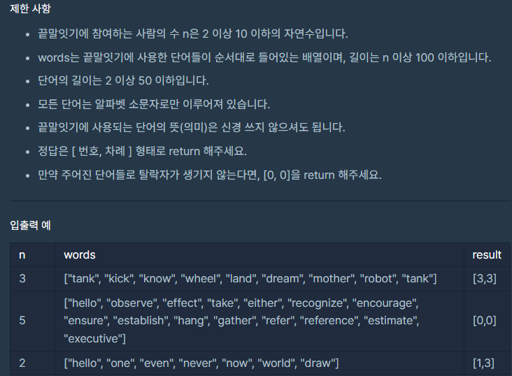 [프로그래머스 Lv2, python]- 영어 끝말잇기 본문