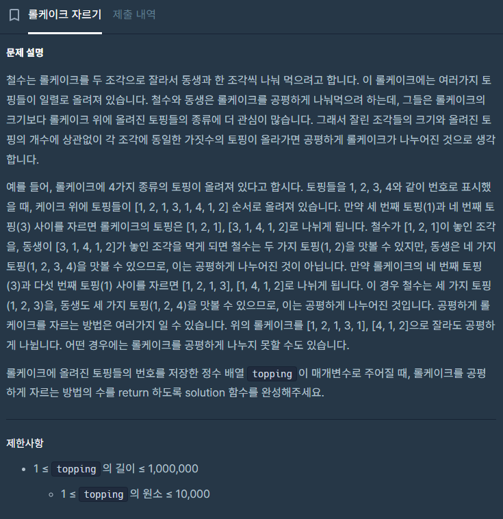 [프로그래머스 Lv2,python]- 롤케이크 자르기 본문