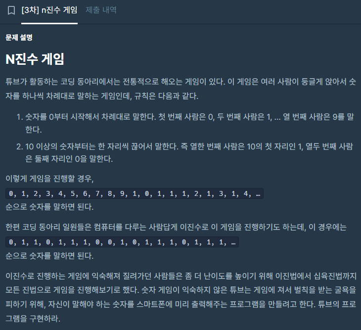 [프로그래머스 Lv2,python]- n진수 게임 본문