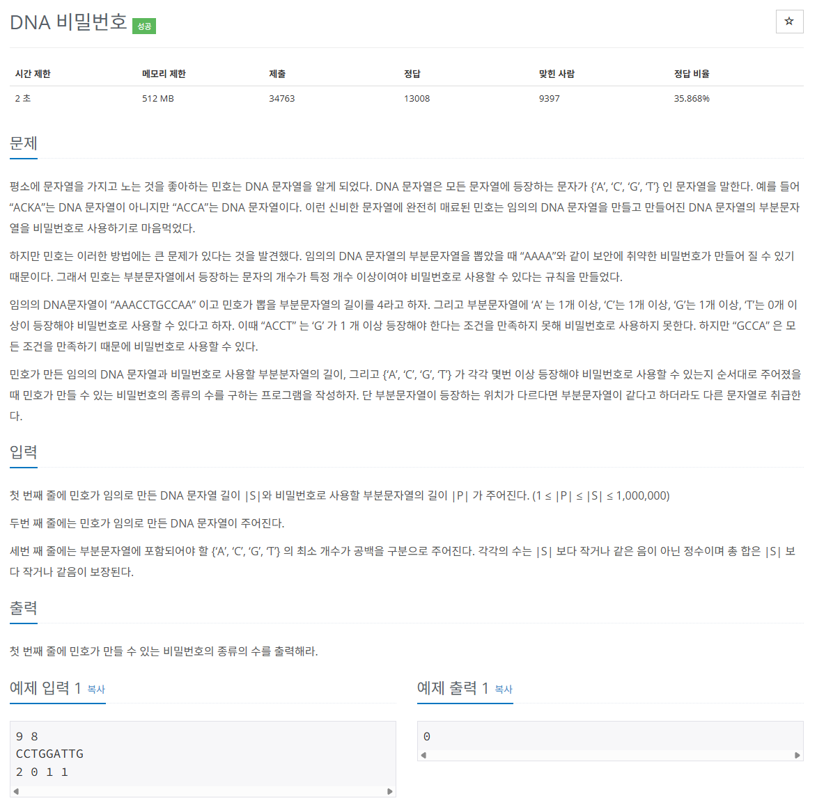 st_cnt = list(map(int, input().split())) # [A, C, G, T] 최소 요구 개수