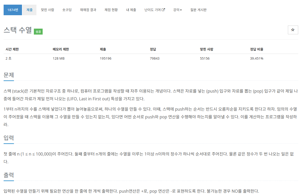 https://www.acmicpc.net/problem/1874