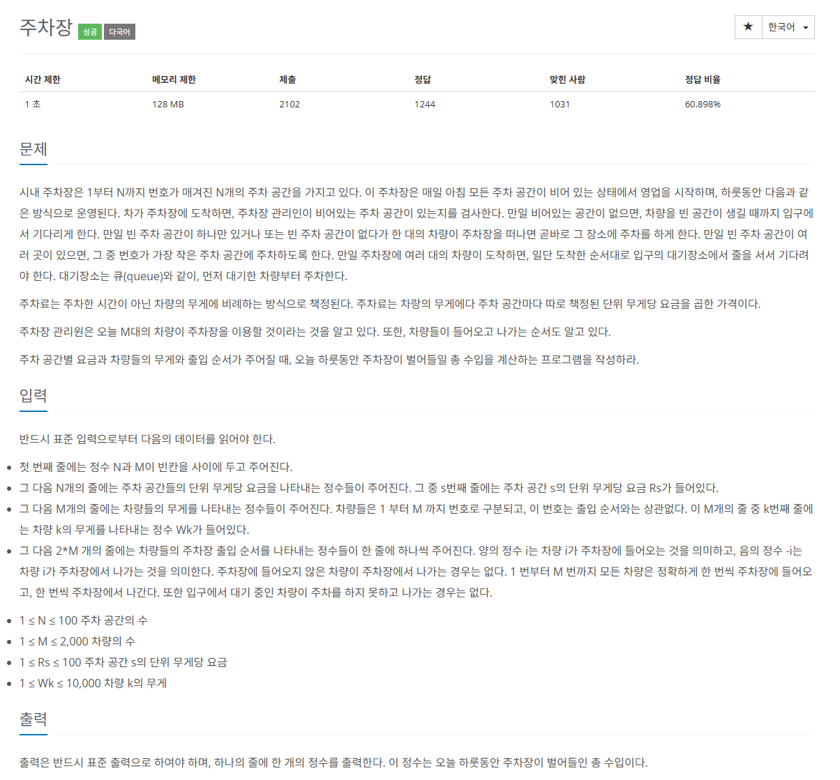 money += R[spot] * W[car] # 주차료 계산