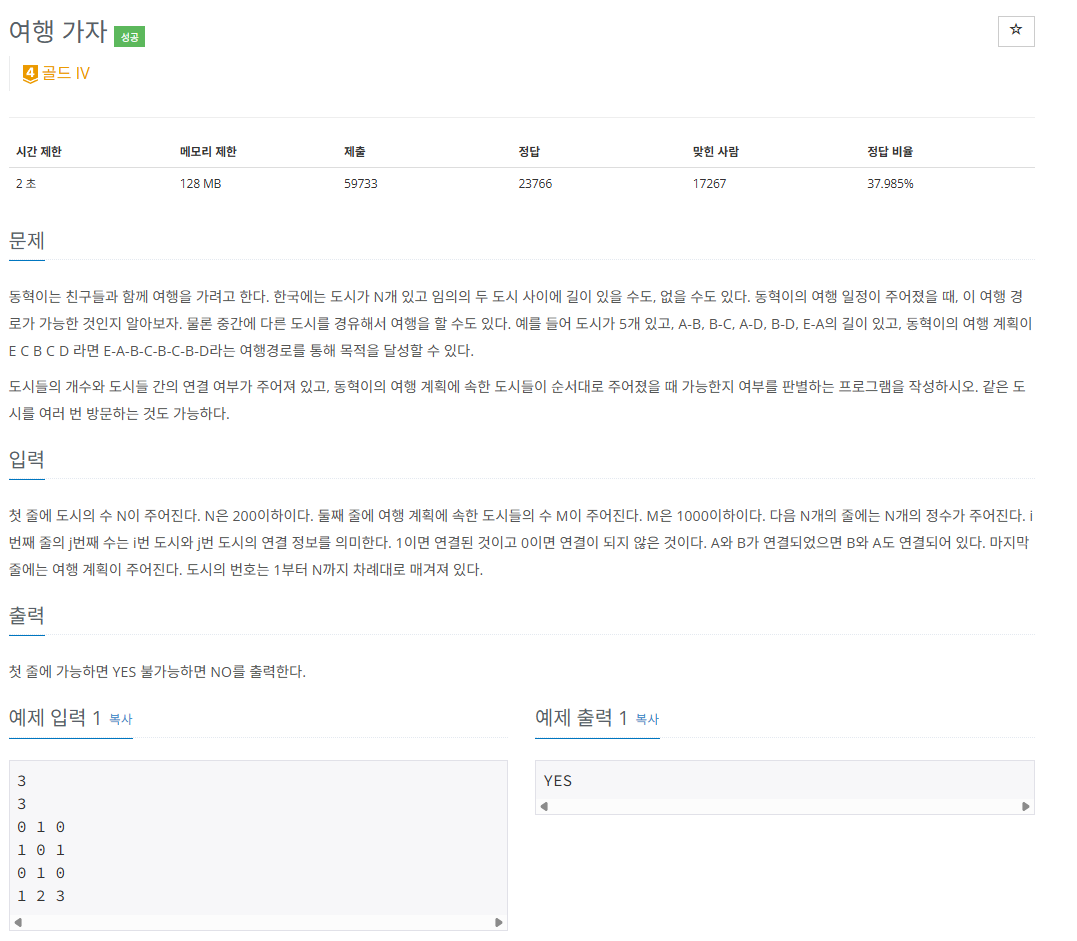 [백준] 1976번,python - 여행 가자 본문