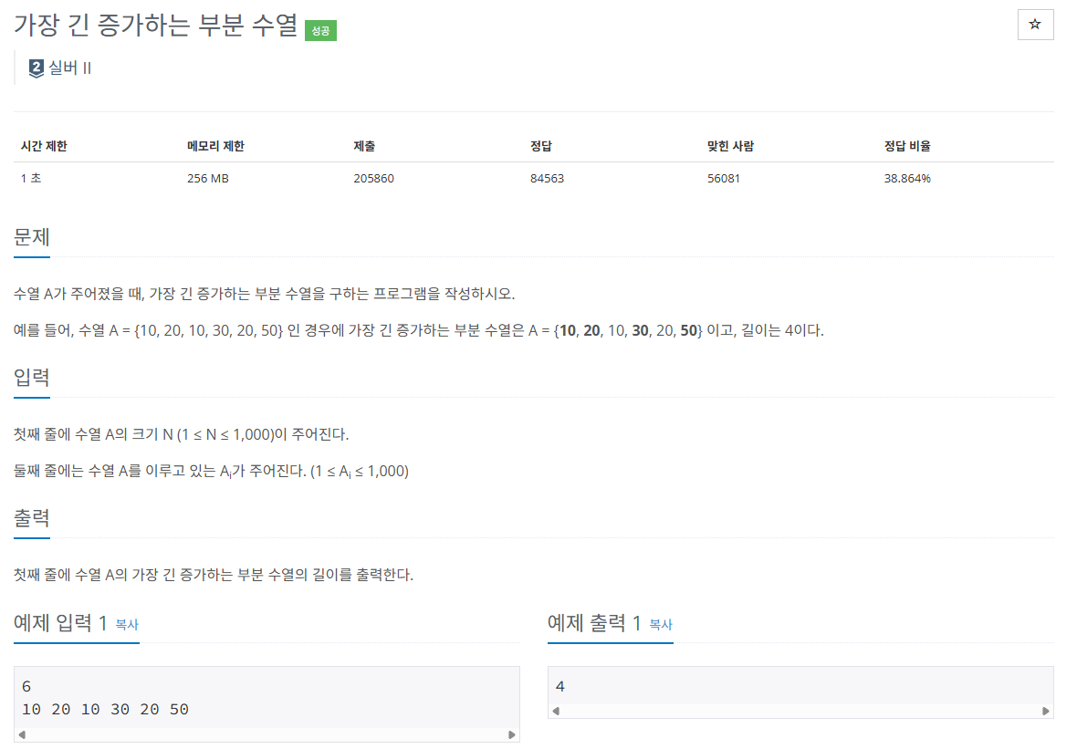 https://www.acmicpc.net/problem/11053